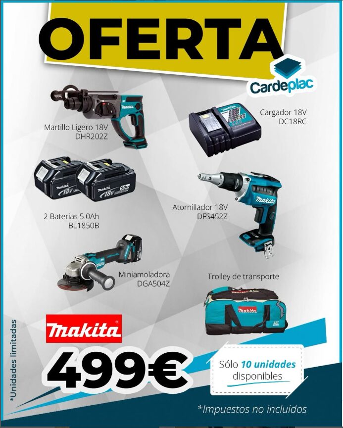 En Cardeplac, como distribuidores oficiales de Makita, trabajamos para ofrecer a nuestros clientes no solo productos de primera calidad, sino tambi茅n ofertas y promociones exclusivas que les permitan equiparse con las mejores herramientas al mejor precio.